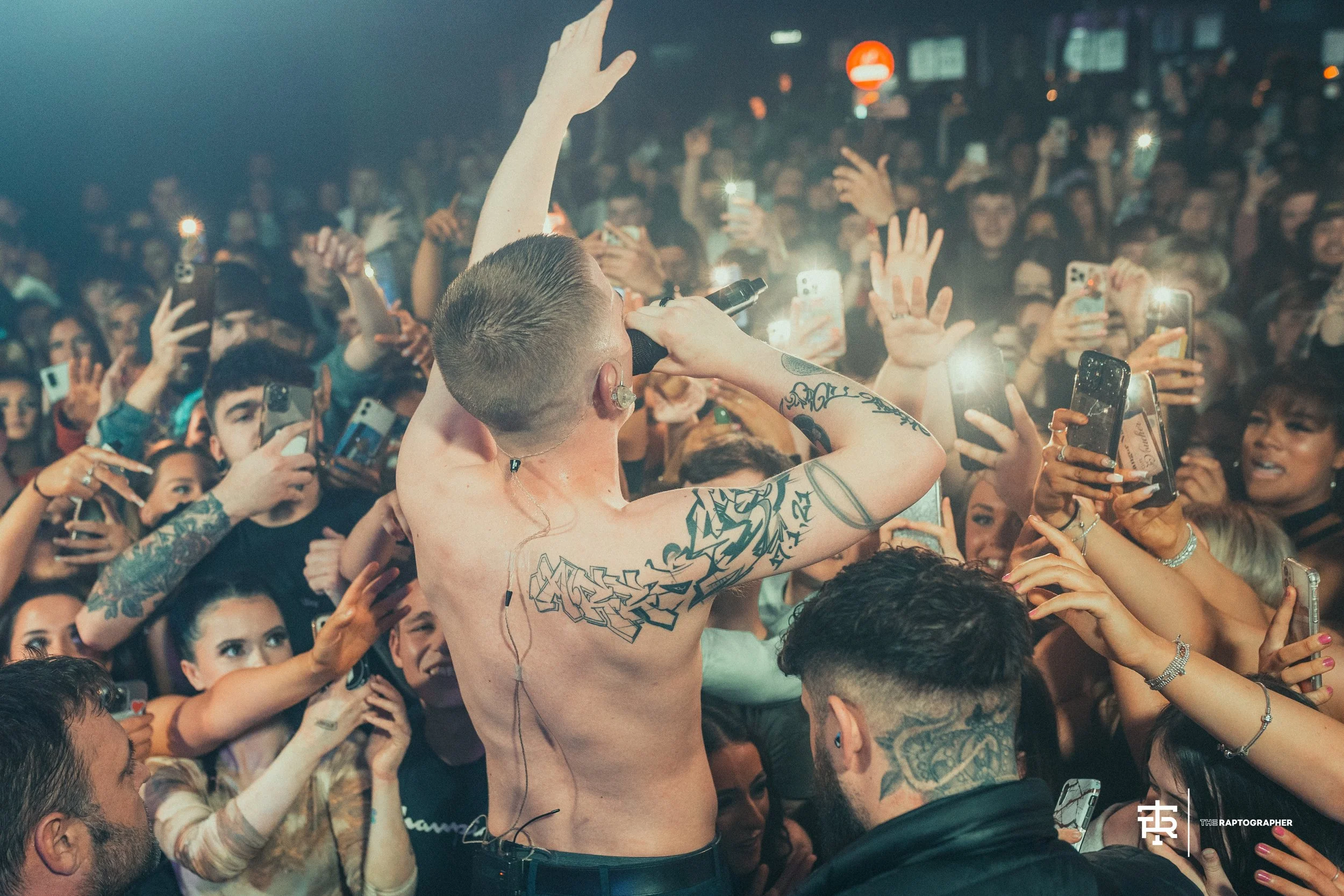 Rap artist Aitch performning at ArrDee's Manchester University Show.