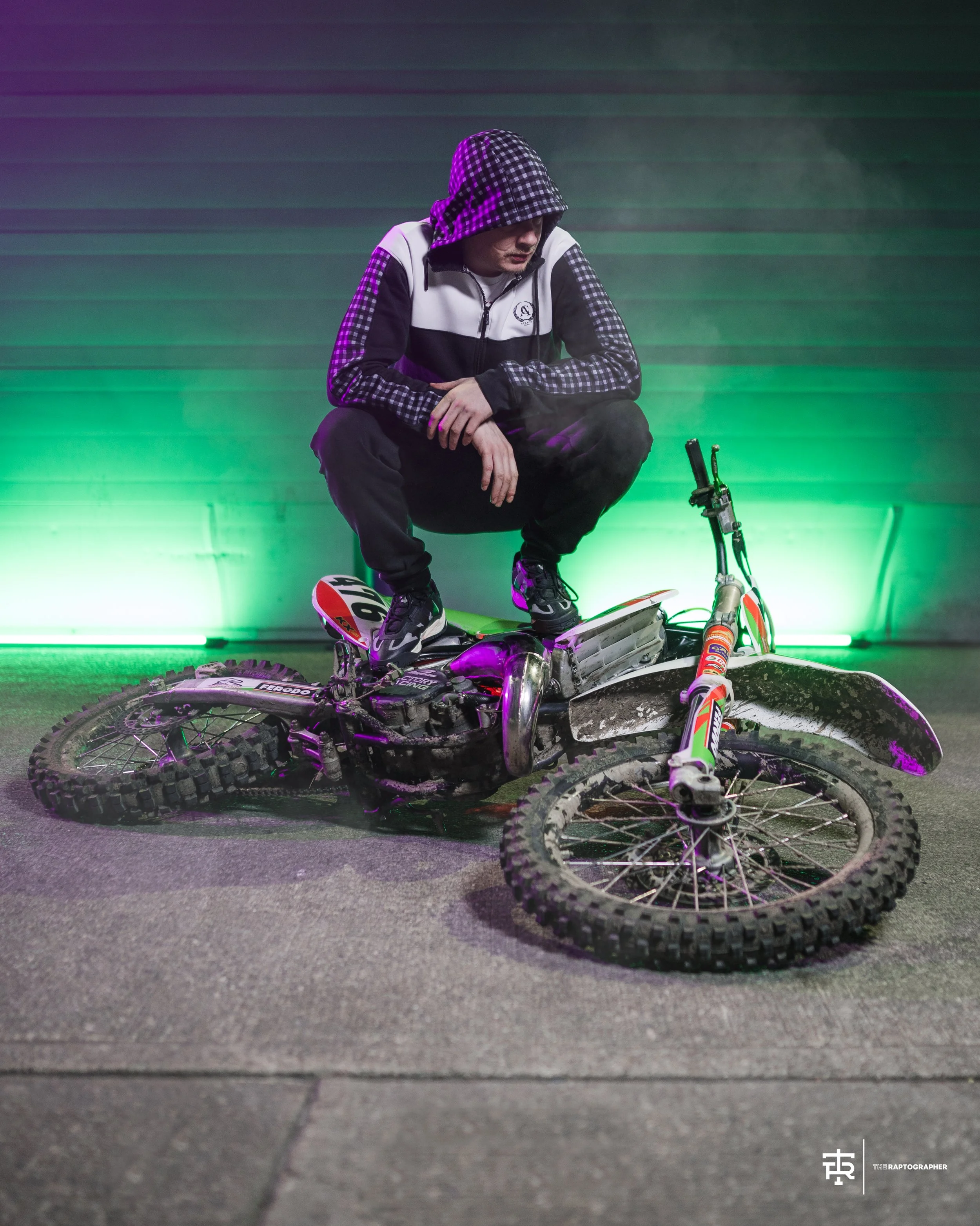 Raptographer Press photoshoot with Manchester based Rapper Shredz, lit using a Falcon Eyes RX18TD, Two Nanlite Pavotube 30c & a single Good SZ150R
